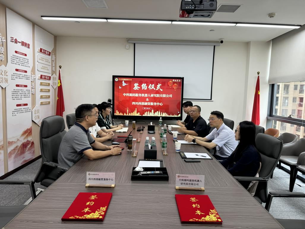 2024年6月26日,四川西部融资服务中心(以下简称“西融中心”)与中科源码服务机器人研究院有限公司(以下简称“中科源码”)签订战略合作协议,并在中心会议室举行专家授牌仪式,中心理事长郑富津、常务副理事长李永雷、副秘书长林亚梅出席了本次仪式。此次活动标志着双方在新质生产力领域的深入合作正式启航,共同探索服务机器人产业可持续发展的新路径。 .